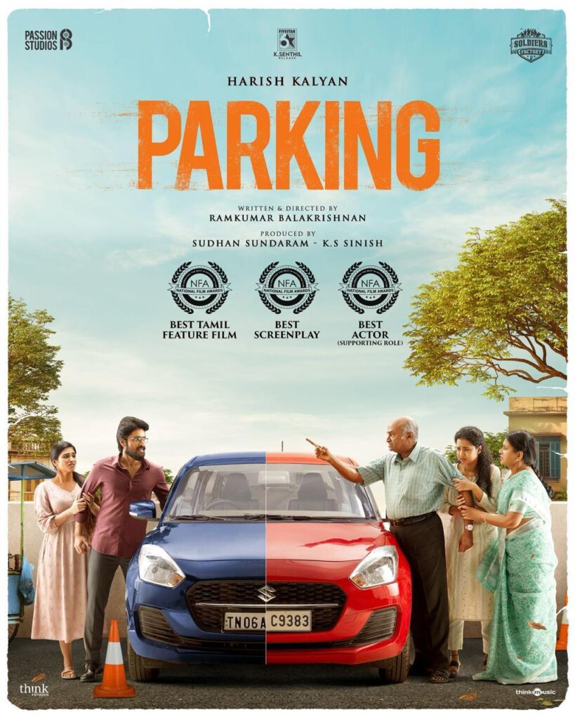 அறிமுக இயக்குநர் ராம்குமார் பாலகிருஷ்ணன் இயக்கத்தில், சோல்ஜர்ஸ் ஃபேக்டரி கே.எஸ். சினிஷ் & பேஷன் ஸ்டுடியோஸ் சுதன் சுந்தரம் தயாரிப்பில் ஹரிஷ் கல்யாண் கதாநாயகனாக நடித்திருந்த ‘பார்க்கிங்’ படம் அதன் வெளியீட்டிற்கு பின்பு விமர்சன ரீதியாக பாராட்டுகளைப் பெற்றது. தற்போது 71ஆவது தேசிய திரைப்பட விருதுகளை இந்திய அரசின் தகவல் மற்றும் ஒலிபரப்பு அமைச்சகம் அறிவித்தது. அதில் சிறந்த தமிழ் படம், சிறந்த திரைக்கதை (தெலுங்கு படம் ‘பேபி’யுடன் பகிர்ந்து கொள்ளப்பட்டது) மற்றும் சிறந்த துணை நடிகர் விருது எம்.எஸ். பாஸ்கர் அவர்களுக்கும் என மூன்று தேசிய விருதுகளை அள்ளியுள்ளது ‘பார்க்கிங்’ திரைப்படம்.