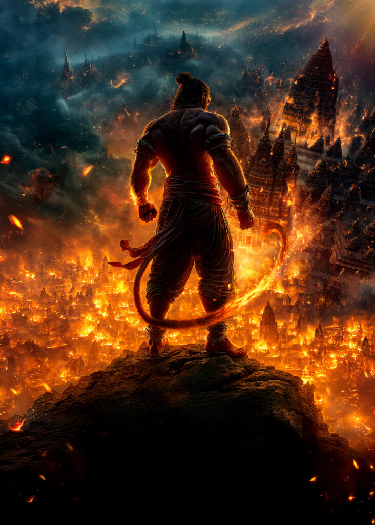 லங்கையை எரிய விட்டு, மலையின்மேல் உயர்ந்து நிற்கும் ஹனுமான் உருவத்தை கொண்ட சக்திவாய்ந்த அறிவிப்பு போஸ்டர், இத்திரைப்படம் தரப்போகும் காவிய அனுபவத்தையும், ஆன்மிக ஆழத்தையும் சரியாக பிரதிபலிக்கிறது. இது ஒரு சாதாரண படம் அல்ல, திருக்கோயில்களும் திரையரங்குகளும் ஒன்றிணையும் ஒரு அற்புத நிக்ழவாக, இப்படம் இதுவரை காணாத பக்தி அனுபவத்தை ரசிகர்களுக்கு வழங்கவுள்ளது.