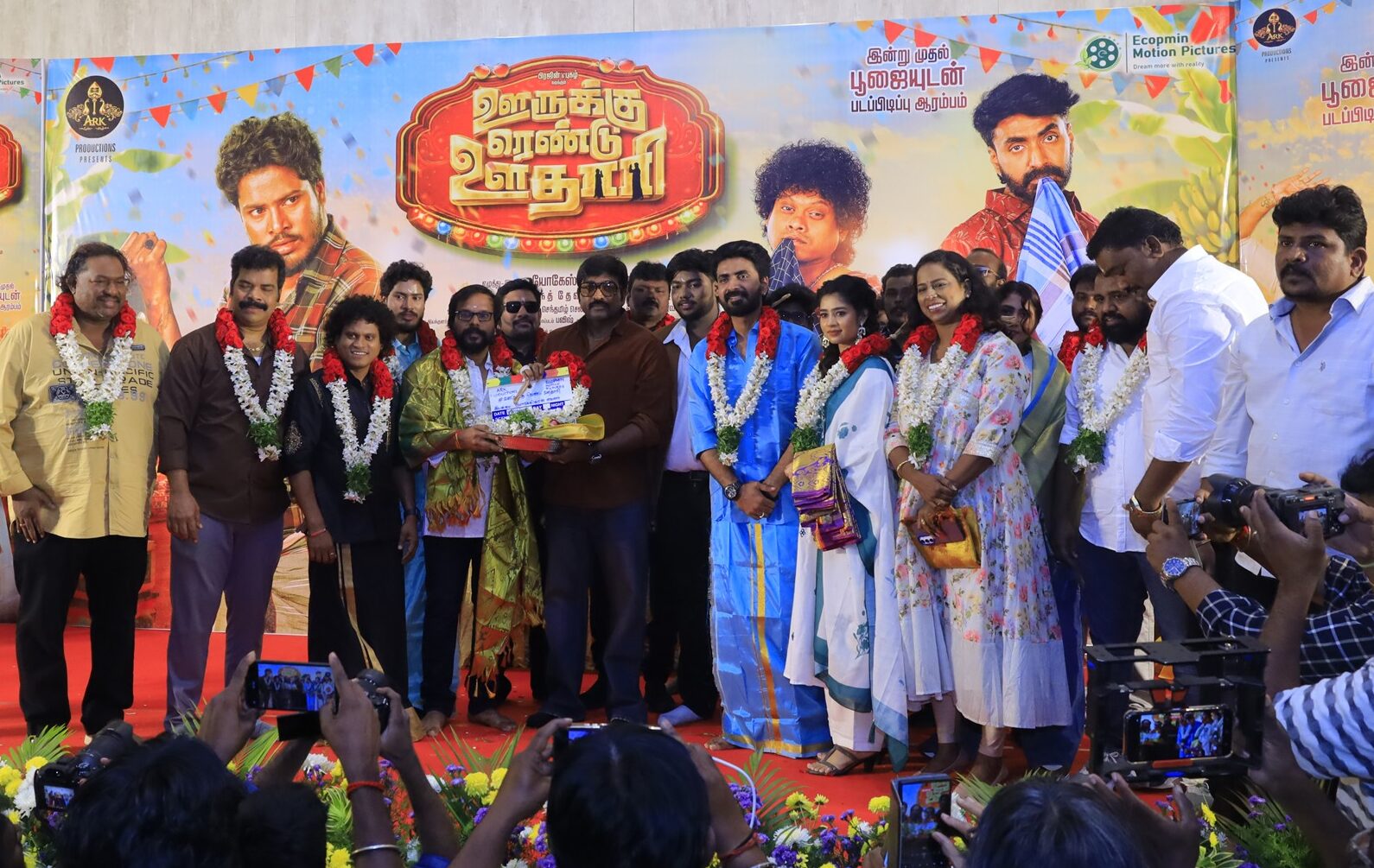 ARK PRODUCTIONS சார்பில் ராமகிருஷ்ணன் ஆறுமுகம் மற்றும் ECOPMIN MOTION PICTURES சார்பில் வினோத் பெருமாள் இருவரும் இணைந்து பிரமாண்டமாக தயாரிக்கும் படத்திற்கு ” ஊருக்கு ரெண்டு ஊதாரி ” என்று கலகலப்பான தலைப்பை வைத்துள்ளனர். பிரபல நடிகர்கள் பிரஜின், புகழ் இருவரும் கதாநாயகர்களாக நடிக்கின்றனர். பிக் பாஸ் மூலம் மக்களிடையே பிரபலமாகி ‘லியோ’ படத்தில் ஒரு முக்கிய கதாபாத்திரத்தில் நடித்திருந்த ஜனனி இந்தப் படத்தின் கதாநாயகியாக நடிக்கிறார். இவர்களுடன் விக்ரம் விஜய் முக்கியம் கதாபாத்திரத்தில் அறிமுகமாகிறார். மற்றும் ரவிமரியா, மைம்கோபி, தீபா அக்கா, அபிதா ஆகியோர் நடிக்கிறார்கள்.