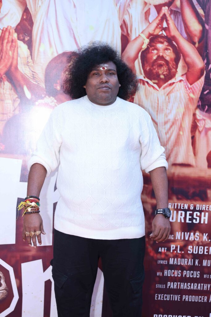 நடிகர் யோகி பாபு பேசும் போது, “அனைருக்கும் வணக்கம், இந்தப் படத்தில் நடிக்க வாய்ப்பு கொடுத்த ரமேஷ் சாருக்கு நன்றி. சுரேஷ் சங்கையாவை எனக்கு காக்கா முட்டை படத்தில் இருந்தே தெரியும். கிடாயின் கருணை மனு படத்தில் என்னை நடிக்க வைக்க இயக்குநர் சுரேஷ் சங்கையா திட்டமிட்டிருந்தார். ஆனால், அப்போது எனக்கு தயக்கமாக இருந்தது. முதன்மை பாத்திரம் இல்லை என்றாலும், வேறொரு கதாபாத்திரத்தில் நடிக்க சொன்னார். தேதிகள் சார்ந்த சிக்கல், மற்ற படங்களில் இருந்ததால் அதுவும் நடக்கவில்லை. இதைத் தொடர்ந்து தான் சுரேஷ் சங்கையா என்னை ஹீரோவாக வைத்து படமெடுக்க வேண்டும் என்று இந்தப் படத்தை கொடுத்தது எனக்கு கிடைத்த பாக்கியமாக பார்க்கிறேன். இயக்குநர் இந்தப் படத்திற்காக நிறைய விஷயங்களை லைவாக செய்து இந்த இடத்திற்கு கொண்டு வந்திருக்கிறார். படப்பிடிப்பில் ஷாட்டிற்கு இடையில் பத்து நிமிடங்களில் கதை சொல்லக்கூடியவர். அடுத்து இந்தப் படம் செய்வோம் என்று கூறுவார். நல்ல இயக்குநரை நாம் இழந்துவிட்டோம். ஆனால், அவர் எப்போதும் நம்முடனேயே தான் இருக்கிறார். குழந்தை பிறந்த பிறகு தான் அவர் உயிரிழந்தார். ஏற்கனவே நான் கூறியதை போல், அந்த குழந்தையின் படிப்புக்கு நான் உதவுகிறேன். மேடை ஏறி சாமி இல்லை என்று கூறுவதை விட மலையேறி சாமி கும்பிடுகிறேன். நான் வணங்கும் முருகனை நம்பி இந்தப் படம் வெற்றி பெற வேண்டுகிறேன், நன்றி” என்றார்.