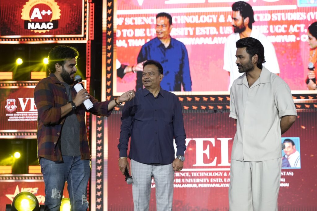 வேல்ஸ் பல்கலைக்கழகத்தில் கடந்த இரண்டு நாட்களாக ‘ வேல்ஸ் நக்ஷத்ரா 2026’ என்ற கலாச்சார விழா நடைபெற்றது. தேசிய விருது பெற்ற நடிகர் தனுஷ் சிறப்பு விருந்தினராக கலந்து கொண்டார்.